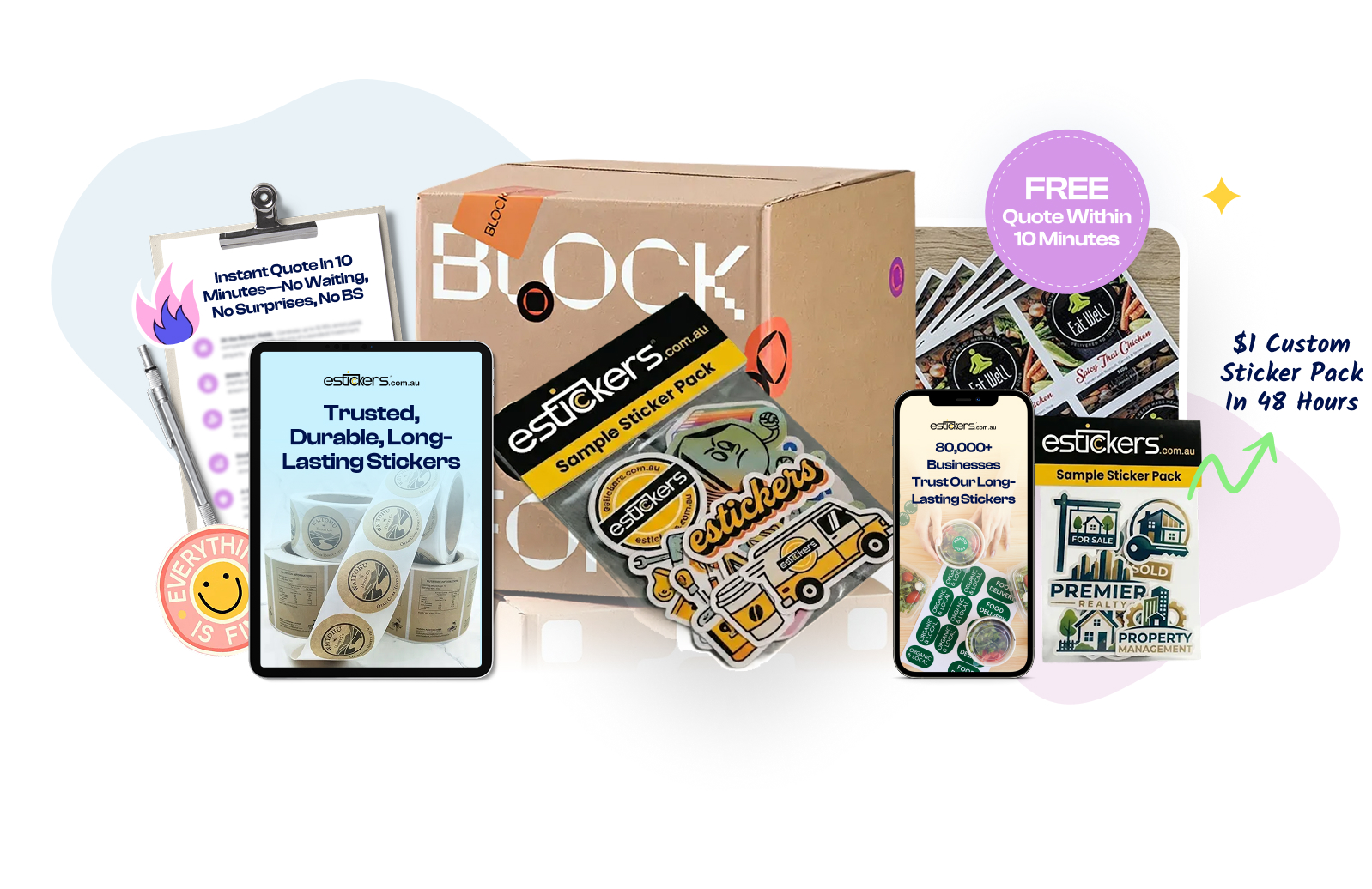 Premium, on-brand business stickers used by Australia’s top brands, get your $1 sample pack delivered in 48 hours. See the colour accuracy, material quality for yourself before committing to any full order.